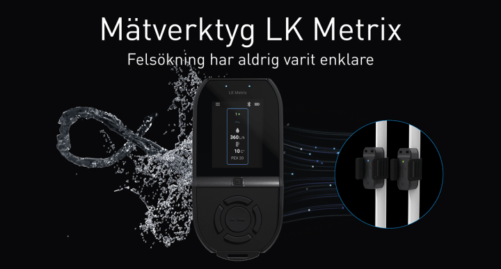 LK Metrix är ett helt nytt verktyg utvecklat för att mäta flöde i vattenledningar. Verktyget monteras utanpå röret och mäter flödet, du behöver inte någon mätventil!