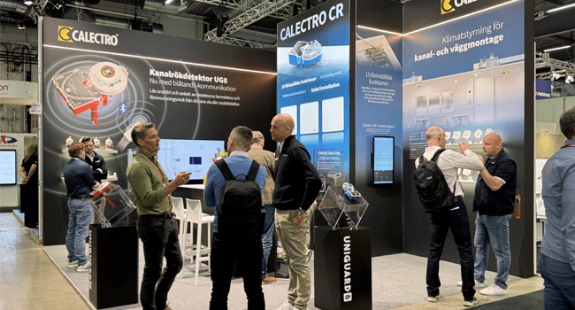 På Nordbygg 2026 presenterar Calectro lösningar för behovsstyrd ventilation, energieffektivt inomhusklimat och nya modeller av kanalmonterade rökdetektorer, med fokus på fastighetsautomation och praktiska applikationer i moderna byggprojekt.